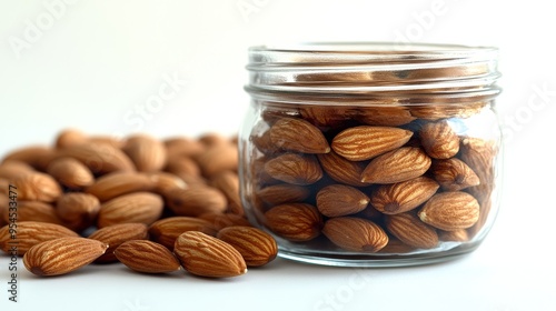 Almonds in Glass Jar on White Background