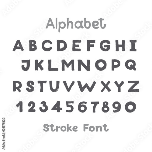 Alphabet. English Sloppy Fat Stroke Font Letters. Capital and numbers.