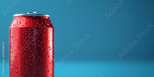 Aluminum red soda can on blue background. Minimalistic concept.