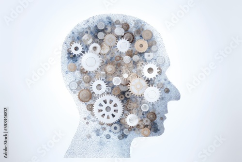 Alzheimer's disease, simple illustration, gears, minimalism, white background, Generative AI