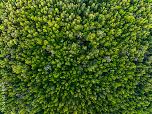 Amazing abundant mangrove forest, Aerial view of forest trees Rainforest ecosystem and healthy environment background, Texture of green trees forest top down, High angle view
