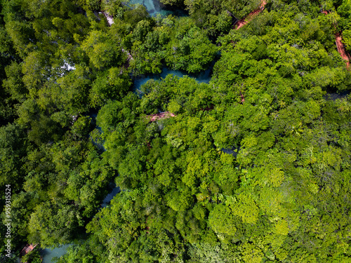 Amazing abundant mangrove forest, Aerial view of forest trees Rainforest ecosystem and healthy environment background, Texture of green trees forest top down, High angle view