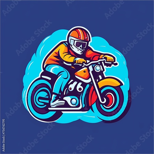Amazing biker logo icon, vector SVG modern flat line style art color.
