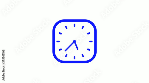 Amazing blue color 12 hours square clock icon on white background,clock icon