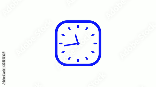 Amazing blue color 12 hours square clock icon on white background,clock icon