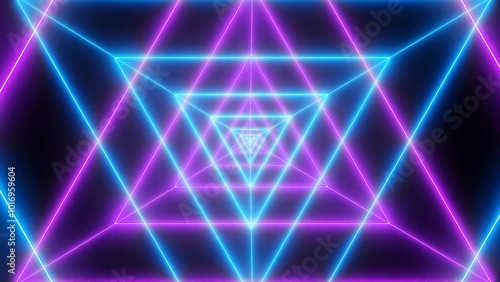 Amazing neon glowing fire triangle tunnel background, abstract background with glowing lines