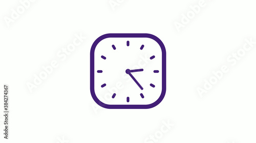 Amazing purple dark square clock icon on white background,12 hours clock isolated