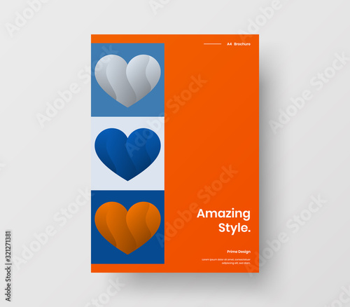 Amazing Valentine's day vector A4 vertical orientation front page mock up. Abstract cover with heart illustration design layout. Holiday greeting card simple creative brochure template background.