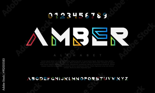 Amber creative modern geometric urban alphabet font. Digital abstract futuristic, game, techno, robot, music, logo, sport, minimal technology typography. Simple numeric vector illustration