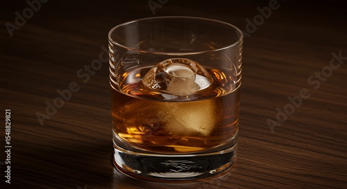 Amber Elixir: A Single Sphere of Ice in a Glass of Whiskey