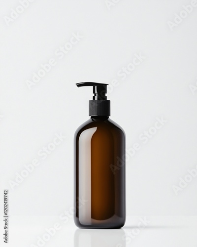 Amber glass pump bottle on a white background