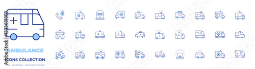 Ambulance icons collection. Line Duotone style, editable stroke. emergency call, siren, rescue, ambulance