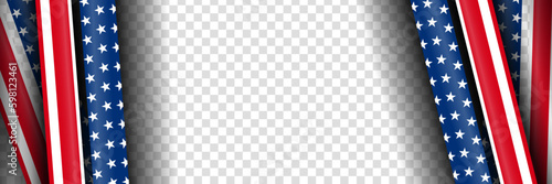 America, 4th of July vector background illustration. American flag with USA flag ribbon on a transparent background. Copy space for your text. Symbol of independence and freedom.