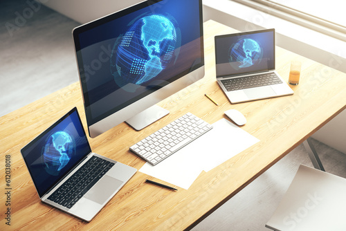America map on modern computer monitor, big data and digital technology concept. 3D Rendering