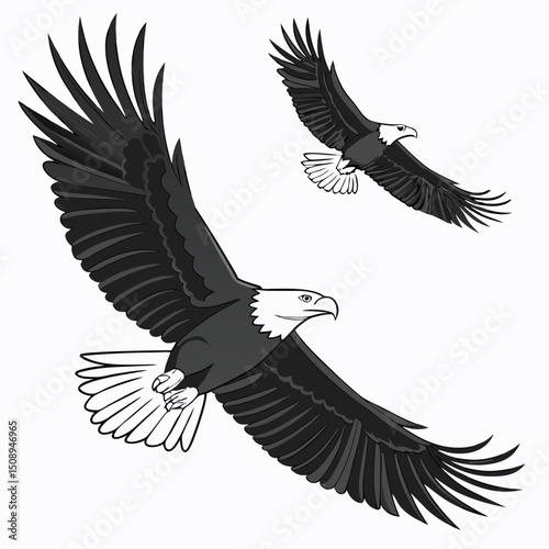 American bald eagles flying with open wings vector illustration isolated