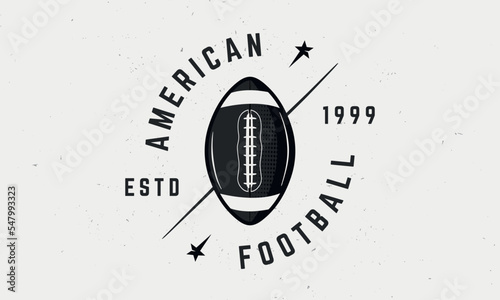 American football logo, emblem, label. Football emblem with ball icons. Print for t-shirt, typography. Emblem, poster templates. Vector illustration