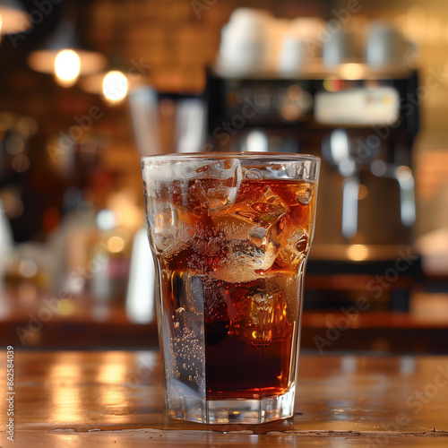 americano iced coffee in a transparent glass on the table, Ai generated Images