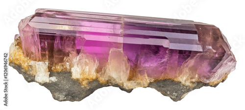 Amethyst crystal mineral specimen on transparent background, gemstone and geology concept