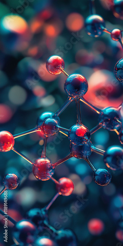 Aminocyanine molecules chemistry photochemistry. Close-up view of aminocyanine molecules highlighting their structure and details.