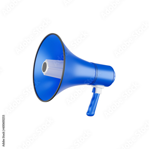 amplifying speaker or megaphone horn blue megafon is a simulated notification speaker icon. render 3d illustration - clipping path