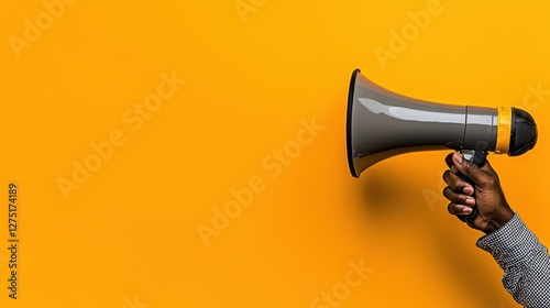 Amplifying voices public speaking event urban setting image of a megaphone vibrant background engaging perspective