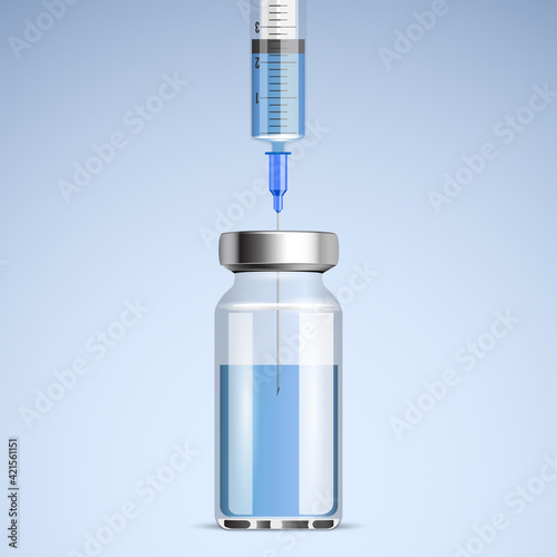 Ampoule and syringe with vaccine. Vector illustration.