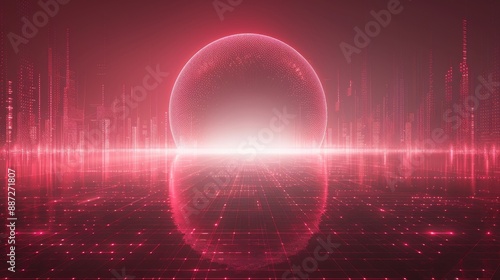 An abst5ract technology background with a huge lit up circle in the sky.