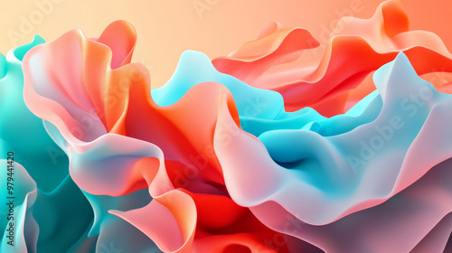 An abstract 3D splash of turquoise and coral, with fluid shapes expanding outward, creating a fresh and dynamic background with smooth, colorful gradients.