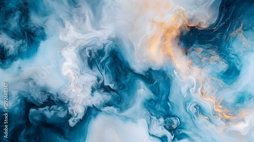 an abstract and ethereal cloud-like fluid art with shades of blue and gold, creating a dreamy and artistic background
