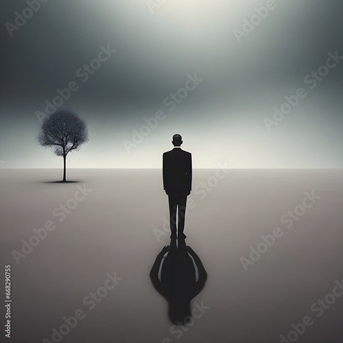 An abstract and surreal image of a lonely person representing loneliness
