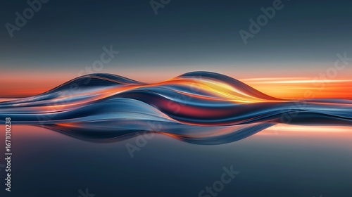 An abstract art background, with smooth lines reflecting the brilliant colors of the setting sun on the water surface, creates a serene and magnificent scene