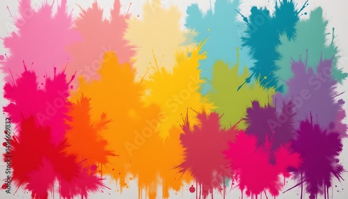an abstract art print that is vibrant and colorful. it's a collage of splatters in various hues, arranged in a way that creates a visually engaging pattern across the entire frame
