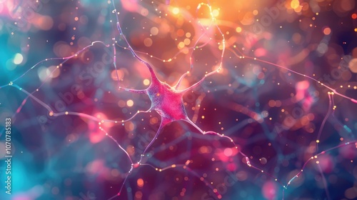 An abstract, artistic representation of brain cells, using bold colors and shapes
