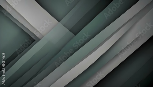 An abstract background features overlapping geometric shapes in cool gray and green tones.