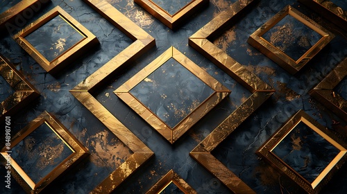 An abstract background featuring an Art Deco inspired rhombus pattern with gold lines, vibrant hues of black and gold, hd quality, digital art, high contrast, geometric design, luxurious aesthetic.