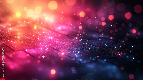 An abstract background with a color grid and blurred lines depicts a virtual space technology concept.