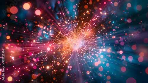 An abstract burst of colorful digital lights and particles, creating a dynamic and vibrant representation of data and technology.