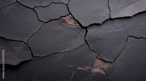 An abstract close-up image of a cracked black surface, showcasing intricate details and texture, evoking a sense of mystery and depth with a modern flair.