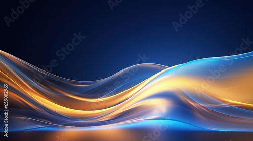 An abstract composition featuring elegant gold and blue waves creates a luxurious background with ample space for text placement.Generative AI
