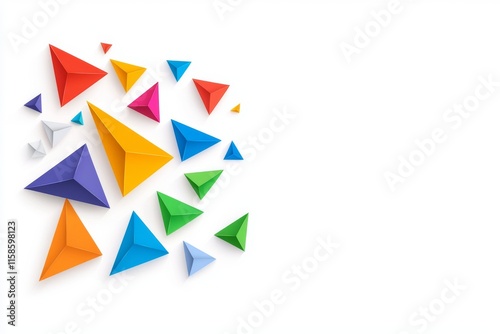 An abstract design with multicolored shapes, each filled with a distinct hue from the rainbow, displayed on a white base.
