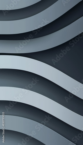An abstract design with wavy monochrome layers in shades of grey, silver, black, and white.
