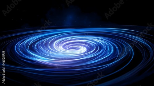 An abstract digital - style image featuring concentric, glowing blue circular patterns forming a swirling, cosmic - like effect against a dark background.