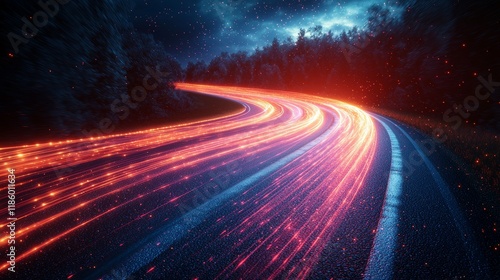 An abstract digital art piece with dynamic light trails, set against a dark background, embodying artistic perspective and conceptual visualization