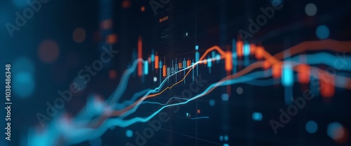 An abstract digital chart displays glowing lines representing data flow and analysis, symbolizing technology, finance, and analytics. The image emphasizes data trends and modern tech.