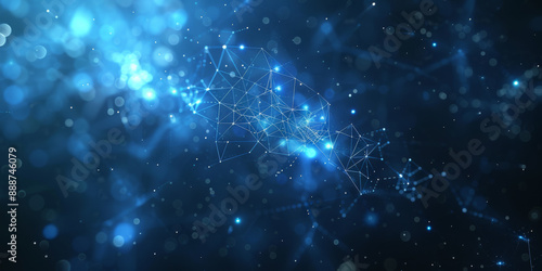 An abstract digital technology background with a dark blue design, featuring glowing dots creating a network pattern effect. 3D Rendering