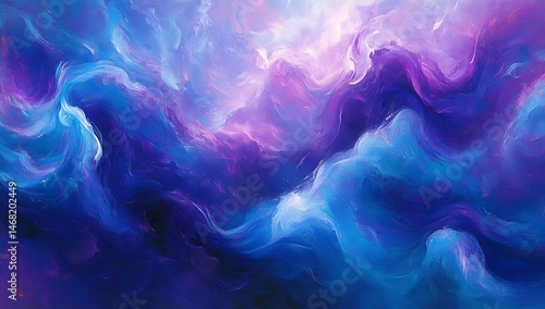 An abstract futuristic design featuring vibrant waves of light, bright lines, and dynamic energy on a blue and purple gradient background.