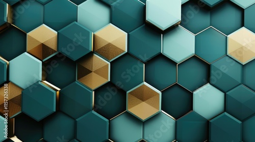 An abstract geometric background with interlocking hexagons in shades of teal and gold