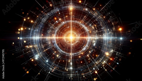 An abstract glowing light pattern against a dark backdrop, concept of futuristic technology.