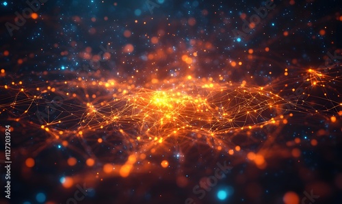 An abstract graphic of a digital network with bright, glowing nodes and intricate connections