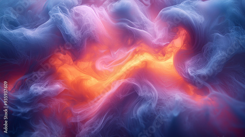 An abstract, high-definition 3D rendering of swirling, colorful smoke against a dark background, creating a dynamic and ethereal effect.